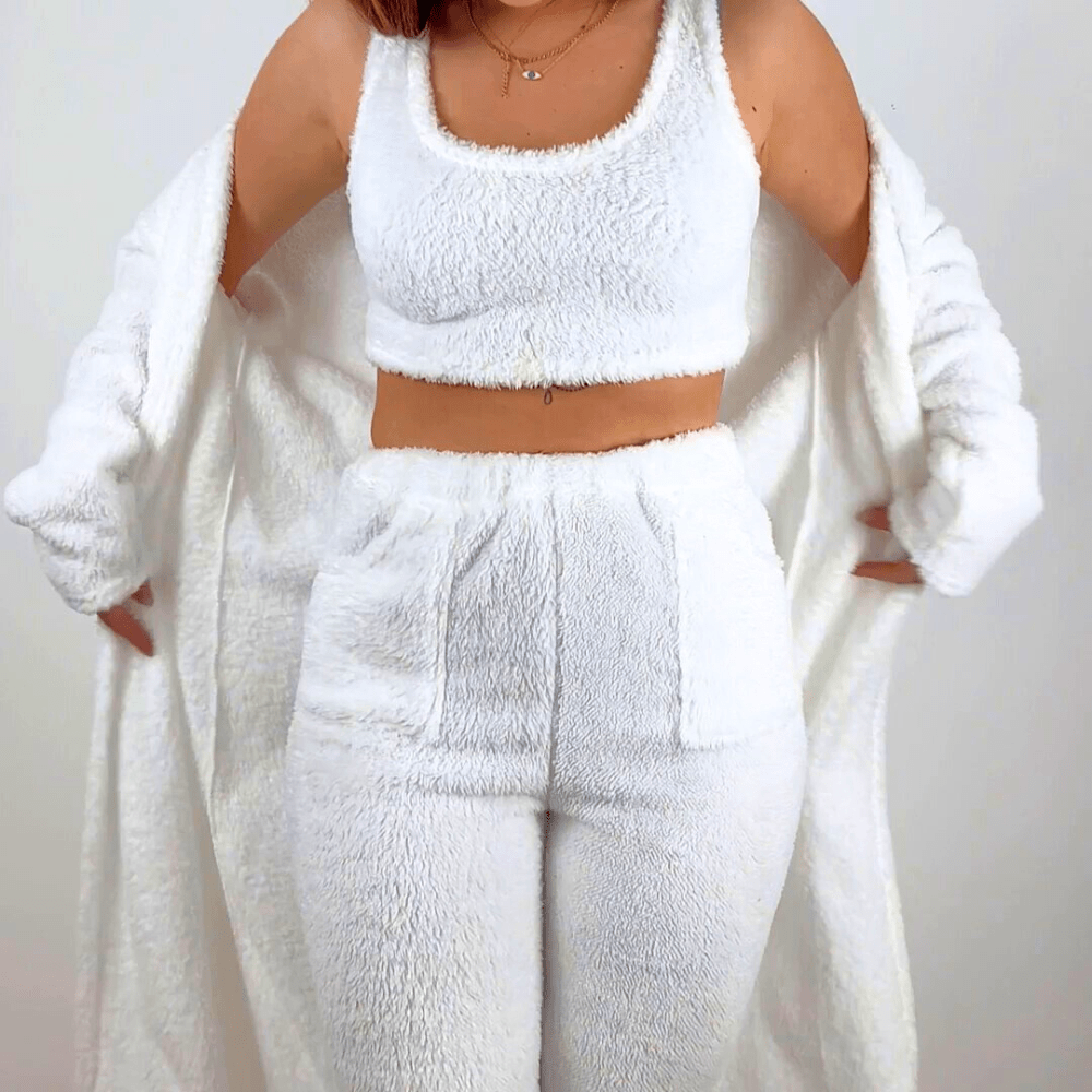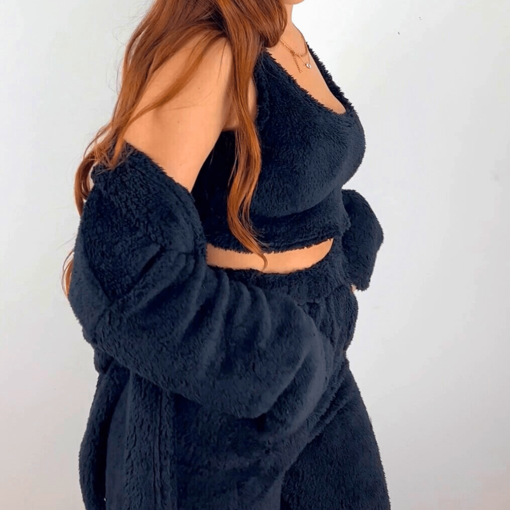 Made of cotton, fleece and elastane, the Misscocoon pajamas guarantee unique comfort for your sweet winter nights. The bra, hooded cardigan and pants form the perfect trio of cocooning and elegance.